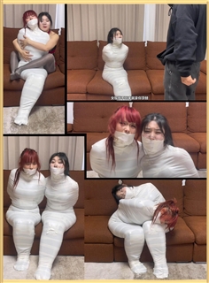 【云雀】《被入室抢劫的美丽母女 下》超人气漫画完美复刻 双人木乃伊捆绑蠕动 求救只有一墙之隔~