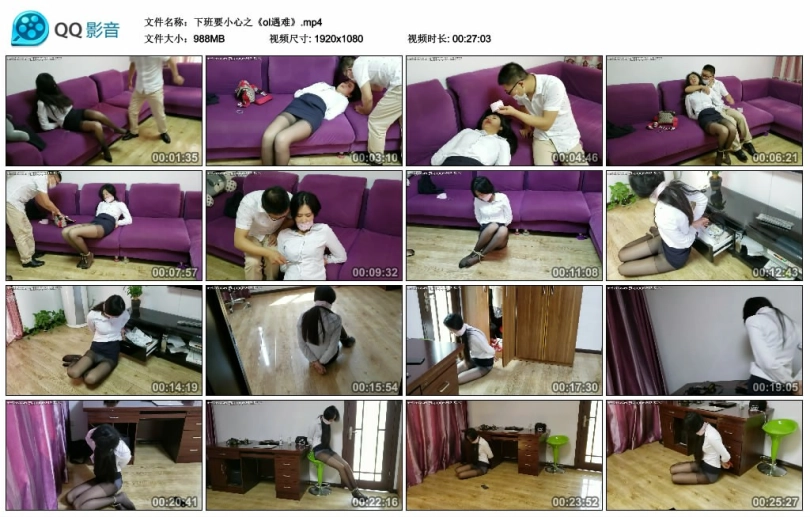 片长28分钟,1080p全高清拍摄。故事讲述了一白领下班遭尾随,开门瞬间遭捆绑劫持,歹徒将其捆绑后胶带封嘴,抢走包包钱财后扬长而去,白领琪琪挣扎无果,最后找到剪刀脱缚报警.....