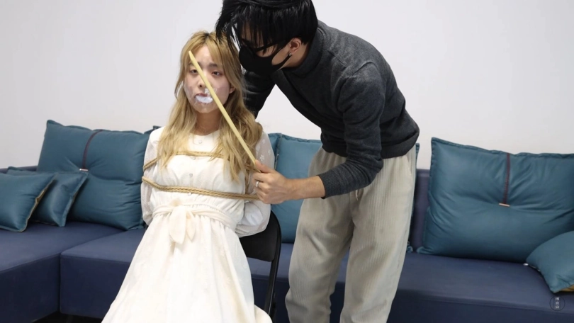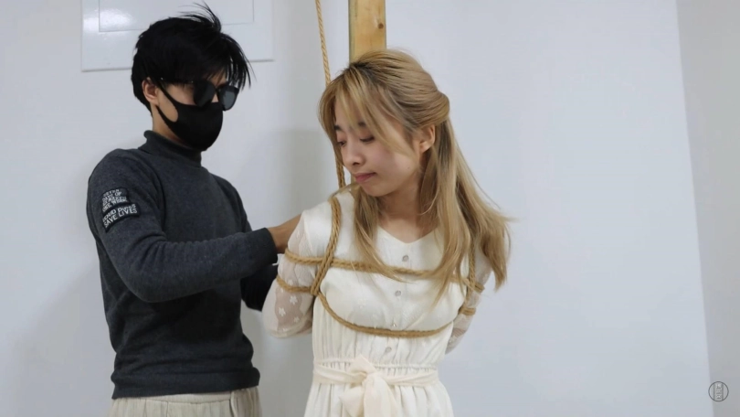 【视频时长】:00:31:17 【文件大小】:2299MB 首先,该部为‘傲慢女友系列`的最后一部,整个完整的故事讲完啦!可喜可贺,临时加班肝出来的剧本,强行二变三的文本扩增,不知道是否能满足大家的观感,也不知是否能够让故事看上去更圆满一些,总之这个系列杀青了,依旧很感谢在系列中出演女友角色的娜娜。 因为对娜娜有了更多的了解,所以此次服装搭配则是按照我印象中的温顺女友风格来搭配的,长裙换了一套又一套,终于挑中了这套令我眼前一亮的搭配(悄咪咪放一张定妆照)。老样子因为我是白袜控所以还是白棉袜,这次的白棉袜长度区别于前两次,纯白刚过脚踝的棉袜,同时这次我也如愿以偿的加入了真正的一镜式原味堵嘴(当然,我还使坏的交代了要在换衣服的时候就穿着这双袜子,包括之前的踮脚吊缚时也是如此,所以嘛……抱歉娜娜,个人私心个人私心hhh) 【小彩蛋】踮脚吊缚时,用于堵嘴的棉袜和那双运动鞋都在【中】出现过,就在娜娜挣扎跳到卧室时出现了一瞬间,23333本意是想弄个小细节的,算是个小彩蛋。 此次的原味堵嘴是真的塞了一整双进去,娜娜的嘴很小,塞一整双还蛮辛苦的,但是她还是坚持着完成了任务,不知最后听到我想捉弄她而弄的采访时是什么心情(我这人真够坏的)同时眼尖的同好们应该会发现,裙子里的股绳一直都在(虽然我写了展示一下就不用绑了,但也太敬业了吧,想想这么挣扎的时候胯下还有股绳,太赞了!) 最后一句废话:谁不想要一个不但乖巧听话还喜欢被绑堵嘴的女朋友呢?(笑) 不多说,开始最后的剧情介绍:书接上回,被许斌的惩罚折服的珊珊无法违抗他,无论是什么样的命令,她都不得不照做。自然,许斌也不是那么好糊弄的,平时在家时珊珊便绳索缠身,几乎时时刻刻的被堵着嘴;而出门时,许斌便会命令珊珊用做家务时穿过的白棉袜塞进嘴里,用胶带封住后戴上口罩,这样珊珊便无法跟别人求助,甚至于每次出门时都会在裙底绑着股绳,令她根本无法集中注意力去逛街。 这天,珊珊和许斌从外面回来后,许斌照常的检查了珊珊[不可描述]的股绳有无松动,以及堵嘴的袜子是否塞满,珊珊自然是全都照做了。然而,许斌却话锋一转,坚称珊珊在外出时用眼神向路人求助了。珊珊想要辩解,却被强行命令着跪在地上,双手背后准备接受惩罚。她心里清楚,无论有没有发生过这件事,只要许斌想要惩罚她便不需要解释了。 许斌:“如果你不给出我想要的答案,我就抽走你脚下的书。” 珊珊:“阿斌,不是你想的那样的,我真的没有背叛你啊!” 然而,许斌并不打算听她的解释,脚下的书本逐渐被抽走,被吊缚的珊珊只能踮起脚尖用白袜脚掌苦苦支撑着,可地狱般的审讯还在继续。 许斌:“你每天都闷在房间里,到底在干什么?” 珊珊:“我,我……我只是有点累了,在睡觉而已——啊,我真的没骗你!” 许斌自然不会相信她的这番说辞,无情的抽走了最后一本书。然而,珊珊的话倒也没有说谎,她确实会因为累了而休息,只不过,那是在自己房间自缚游戏过后罢了。许斌失去了耐心,将前些日子珊珊运动鞋中的脏白袜(小彩蛋)取出塞进了珊珊嘴里,随后用口球隔绝了她的诡辩。 “你就这样给我好好反省吧!” 踮起脚尖的珊珊呜呜的叫着,口球将自己的脏袜子推向喉咙深处,可背后吊高的手根本无法将绳子解开,她就这样挣扎着,身体被绳子勒的疼痛,却难以言表。 数日后的一天,许斌因外出夜不归宿,但他给珊珊留下了任务,早已被驯化的珊珊立刻执行,将自己脚上的原味白棉袜一只一只的塞进嘴里,重新穿好白棉袜后又用扎带将脚趾也绑在一起,珊珊努力的还原着许斌对自己做过的一切,终于将自己绑好后,她享受了一番。但她本能的觉得,这样还不够,便挣扎着跳到一处角落,取来了绳子,将自己更进一步的绑成驷马。 许斌回来时,正好看到驷马挣扎的珊珊,许斌表示他很满意珊珊的乖巧,可珊珊却说出了更加令他震惊的话 珊珊:哈——阿斌你总算回来了,我一个人没办法绑的更紧了,还在苦恼该怎么呢。 许斌:你想要更紧?珊珊,我觉得你做的已经够好了。 珊珊:怎么会呢!完全不够啊,我还可以蒙上眼睛,还可以在堵嘴外面封上胶带,还可以用袜子把手也套住——阿斌……我做的不好,你惩罚我吧。 许斌:啊?这…… 珊珊:哎呀,不要婆婆妈妈的,狠狠的惩罚我吧! 许斌:珊珊,原来你已经…… 此时的许斌才明白,原来自己的驯服计划已经成功了,珊珊已经深深的爱上了被绳子拘束,被惩罚的感觉了,心领神会的许斌立刻转变了态度“哼……什么时候轮到你来命令我了?忘了规矩了吧?” 将原味棉袜再次塞进珊珊的嘴里后,许斌取出了初次惩罚珊珊时用的竹棍,同样是抽打着珊珊敏感的脚底,可这次的呻吟声中便不再只是痛处,还混合着愉悦与些许[不可描述]。 许斌:今晚就这样过夜吧,没有意见吧? 珊珊:呜呜——(摇头) 许斌:哼!这是当然的,毕竟珊珊可是最喜欢嘴里含着臭袜子,被绑起来自我反省的了,对不对? 珊珊:呜呜——(点头) 沉浸于被惩罚的[不可描述]中,这样的日子过了一年,这一年间珊珊变得更加乖巧了,可以被绑着做家务,只是做错事的频率多了些,也不知是真的做不好,还是在期待做不好的惩罚呢? 大家都很奇怪,许斌是怎么找到这么听话的女朋友的,让她做什么她都会去做,没有半点怨言,也从未顶撞过他——这是自然,嘴里一直塞着她自己的袜子要怎么抱怨呢? 如果可以的话,许
