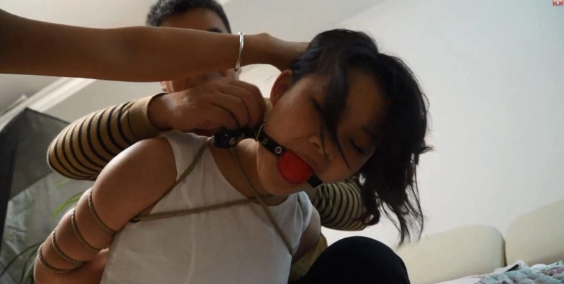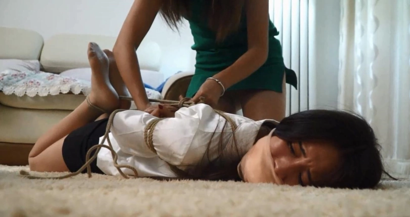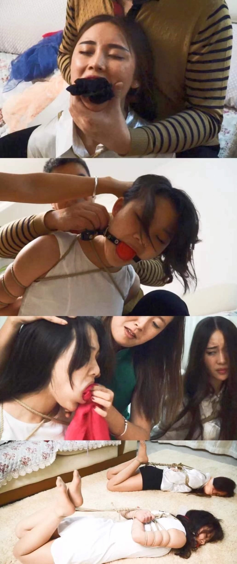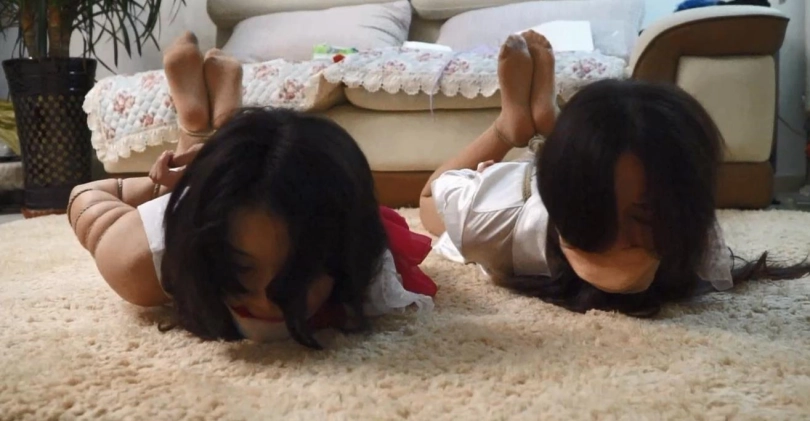 有当年的人气模特邢佳妮,整体剧情大概就是 两口子,一男一女,强行捆绑两位肉丝美女,对话丰富!然后采用各种物品进行堵嘴!包括 连裤袜,口球,丝巾,甚至还有卫生巾,纸巾等!最后直接驷马捆绑放置在地板上,无助的挣扎.....