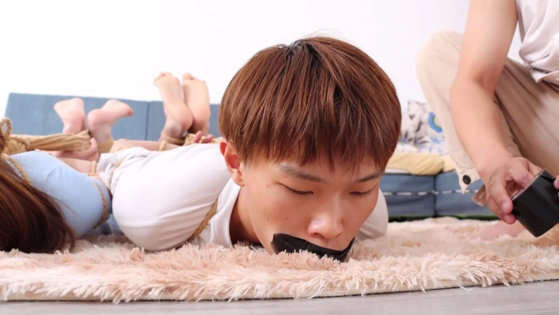 【文件大小】:1050MB 模特琦娜和其男友出演。 女孩和自己男友在家遭遇歹人入室抢劫,劫匪将二人手脚简单捆绑后取下二人口中的塞口球,分别脱掉二人脚上穿的锦纶丝袜塞入他们口中,而后继续去屋里翻找财物。 情侣二人想办法扭动身体挣扎,并试着背靠背互相解绳子,但挣扎一会儿后不幸被从屋里出来的劫匪发现。 生气的劫匪将情侣二人驷马捆绑放置在沙发前地上,并说给二人换个东西塞嘴,拽出情侣二人口中原味锦纶丝袜后分别用两条丝巾塞入他们口中,并用黑色宽胶布剪下5张封嘴,再用黄色胶带和黑色弹力自粘绷带缠绕多圈将二人嘴封严实。 劫匪恶作剧般拿手机给情侣二人拍照,还故意拿给他们看进行羞辱,情侣二人羞愤交加瞪向劫匪,劫匪一看还敢瞪我,干脆用黄色胶带和黑色自粘绷带将情侣二人眼睛缠绕多圈,剥夺他们视力,而后劫匪心满意足带着抢来的财物离开了。 情侣二人在黑暗中拼命呜呜闷哼扭动身体挣扎,可始终无济于事,只能减小挣扎幅度耐心等待救援。 ![]() ![]() ![]() ![]() ![]() ![]() ![]() ![]() ![]() ![]() ![]() ![]() ![]() ![]() ![]() ![]() ![]() ![]() ![]() ![]() ![]() ![]() ![]() ![]() ![]() ![]() ![]() ![]() ![]()