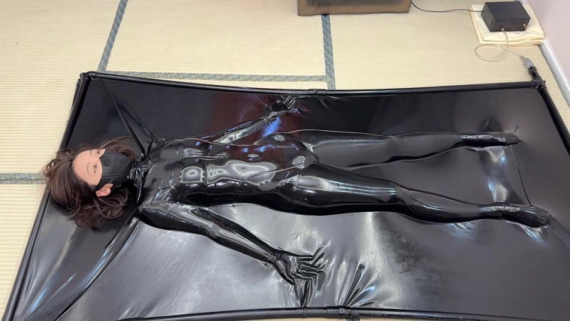 著名逃脱魔法师半糖在K市颇有盛名,某天她在手机上收到一份邀请函,“魔法师半糖愿意接受神秘老K的逃脱挑战吗”半糖不屑看着邀请函,直到看见后面写着接近百万的奖励,心中不由心动,便说道“这不是给我送钱吗”于是半糖果断回复了愿意,不久便来到来到老K的基地,一进屋子便感受到了诡异的气氛,到处都是奇怪的束缚道具,尤其是屋子中间摆放的黑色胶床,老K的声音随即传来,只要成功在半小时之内逃出胶床,奖金就是你的了,记住中间只有一分钟的停之前抽气时间,那是你的唯一机会,半糖信心满满,“胶床这东西虽然没有尝试过,但对于鼎鼎大名的魔术师来说,还不是轻轻松松”于是半糖换上老K的塑身衣进入了胶床,随着机器的轰鸣声,半糖渐渐被裹紧了,并且动弹不得,“这胶床真紧啊”我得好好等候那个时间,期间半糖尝试挣扎但是毫无效果,直到断气时候半糖开始奋力挣脱寻找出口,“这该死的胶床怎么还是动弹不得”随着一分钟的时间结束,机器继续启动,很显然半糖失败了,等到她的只能是永久束缚,不甘心的半糖拼命挣扎,试图逃脱,直到老K出现,他笑了一下,“想不到你落在了我手里”,于是开始了对半糖的tk,半糖拼命挣扎,逐渐力气不够“是我大意了,该死的老K,你阴我!”但等待她的只有永久的禁锢。