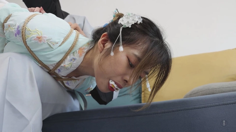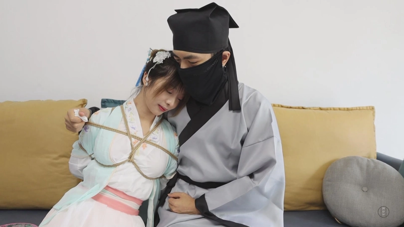 【视频时长】:00:31:27 【文件大小】:1575MB 此次就不放出看点前瞻了,我觉得只看截图能够清晰的知道亮点。 首先,还是感谢一下原本没有机会拍的娜娜突然有机会拍了,让我逮到机会用上了早已经准备好的古装剧本,在我心中,娜娜一直都是我剧本女主角的第一人选,只要她有档期我绝对会优先选择她,除了对她有理想型女性的加成以外,更重要的是娜娜每一次对我剧本的演绎都只会让我惊叹,从未让我失望过。 此次剧本是我呕心沥血之作,风格完全区别于之前的作品,更接近于清的大小姐那部,原因也是因为自己想追求“美”这个极致,尽可能的做到服装美,造型美,模特美,剧情美,台词美这些综合的文艺美,所以这部片子的优缺点也十分明显,估计会很难用吧,但抱着欣赏的眼光来看,倒是不错的选择,毕竟娜娜她真的是太好看了! 我就不啰嗦其他有的没的了,炎炎夏日,七夕佳节,看腻了剧情匮乏、类型单一的功能片的话,可以尽情一试。 剧情梗概: 古语有云:结发为夫妻,恩爱两不疑。 此身虽受缚,此情终不渝。 云瑶:永平四年,七月初七,与官人偶遇于街市,四下嘈杂,回首望向官人,官人亦回望小女,方有命中注定之感。 云瑶轻摇小扇,羞怯地将面庞遮住,问道:官人何故停下?有何见教? 但见官人拱手作揖,还礼道:是在下失礼,敢问姑娘芳名? 云瑶移开小扇作答:小女名唤云瑶,青云的云,瑶琴的瑶。 官人望着云瑶不觉出神,待得云瑶姓名方才回过神来,答曰:在下是进京赶考的秀才,名为巩生,只因临时兴起,想将一句先人的诗句赠予姑娘。 “云想衣裳花想容,春风拂槛露华浓” 这是当年在极乐之宴上唐玄宗命李白写给杨贵妃的诗句,巩生将其赠予初见面的姑娘倒是颇为夸张,然而这也让云瑶产生了浓厚的兴趣,便发难道:官人搭讪女子的手段便是赠予诗句吗?这倒是颇为新奇呢~ 二人的缘分便就此展开。孤男寡女,正值年少青春时,情愫的产生总是飞快,时间的流逝仿佛转瞬之间,二人便已经陷入热恋。云瑶是个好姑娘,会悉心照料巩生,而巩生也在心中暗自发誓,他日倘若考取功名便一定要风风光光的迎娶云瑶。 云瑶:一次偶遇便是一段情缘,小女不可救药的爱上了官人,不理世俗不问世事,只想做一对神仙眷侣,永生永世不分离。 一日,巩生对云瑶提起了一件事情,巩生有一个愿望,那便是亲手将自己所爱的女子捆绑起来,在他看来,如果女子能够被自己亲手捆绑起来,那便是对他忠诚的表现。 得知了巩生想法的云瑶并未有半点不理解或是愤懑,而是十分配合的背过身将双手放在身后,说道:既然官人想绑缚小女,那便绑吧,小女会向官人证明小女此生只属于官人。 绳索游走在洁白的汉服之上,云瑶顺从的配合着巩生让他将自己的自由夺走,甚至叮嘱巩生要绑的紧一些,这样便更能证明自己的忠诚。待绑缚完毕,精美的绳网在云瑶身上错落有致的分布着,背着双手的云瑶仿佛折翼的天使一般,令巩生着迷。 然而,云瑶却自发的跪在了巩生面前,任由巩生想去搀扶也没有起身,她已经下定决心尊巩生为夫君,自古以来妻子顺从夫君便是理所当然,只是云瑶并非被胁迫,而是因为深爱着巩生。巩生将云瑶的小扇放在不远处,询问云瑶能否将小扇用口叼回,云瑶轻声应允后便跪着走到了小扇附近,用朱唇含住扇柄,艰难的向巩生的方向跪行。 对于一个久居深闺的女子来说,这似乎太过于苛刻了,于是小扇在途中掉落在地上,待云瑶想要弯腰再次用口叼住扇柄时,巩生制止了她,他将小扇拾起后用手帕擦干净扇柄,并将扇柄再次含在云瑶的双唇之间。巩生此举也意味着他并非是个只顾自己的男子,他展现出了能够与云瑶互相帮扶的决心,当接过云瑶的小扇,云瑶幸福的伏在巩生的腿边,享受着巩生对她奖赏般的摸头。 不过小扇还是在途中掉落过一次,以此为由,云瑶向巩生讨要了一次惩罚,巩生将绣着一对蝴蝶的白色手帕塞入云瑶口中,然后将她横放在自己的膝盖上,大手一次又一次的抽打着云瑶的臀部,自然,这并非什么惩罚,而是一种示爱的表现,巩生故意打了七次,也叫云瑶数了七次,七次代表着七月初七,便是他们相遇的那天。 二人分别前,云瑶将一只袜子留给了巩生,袜子对于女子来说属于贴身物品,将此物交给男子的话便足以证明以身相许的决意,巩生也发誓日后一定会带着这只袜子去提亲。 然而,这件事很快便让云瑶那封建又顽固的父亲发现了,父亲发现云瑶私自与一介书生私定终生后大发雷霆,将云瑶强行捆绑于闺房中,甚至用白布勒住了她的嘴,没给她半点解释的机会。云瑶只恨这绳索捆的如此紧,让她不能踏出家门半步,她只希望日后有那么一天,巩生会来接她离开这个如牢笼一般的闺房。 可惜,等来的却是父亲将那只送给巩生的定情袜子狠狠的扔在她身上,父亲炫耀一般的说已经将前来提亲的巩生活活打死,云瑶望着这只袜子,悲愤在心中爆发,她发了疯一般挣扎,不想相信父亲说的话,可她一介弱女子能做得了什么呢?只是换来了更紧的捆绑和更严密的堵嘴罢了。 父亲用她脚上的白棉袜将她的抗议和委屈全部堵在口中,身上的绳索也让她无法动弹分毫,甚至连脚趾都被绑在一起,被蒙住眼睛后云瑶陷入深深的悲痛,挣扎,却也无济于事。 不知过了几日,也不知因不听管教被打了几次,浑身是伤的云瑶仍然被缚着身子,堵着嘴坐在床边,双目无神的听着父亲说着什么今天是大喜之日,对她来说,哪还有什么大喜之日