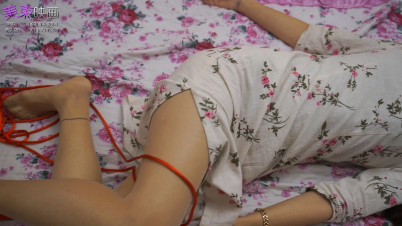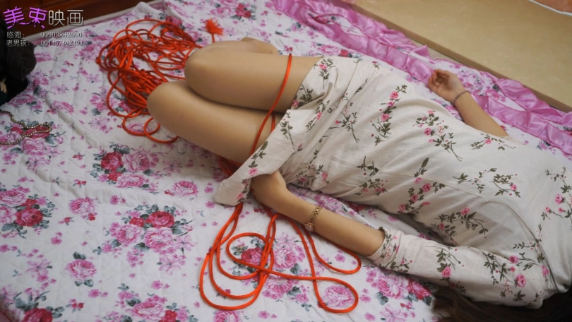 古朴旗袍与红绳更搭配,模特丝袜脚还不错,绑成驷马挠脚底很好玩。