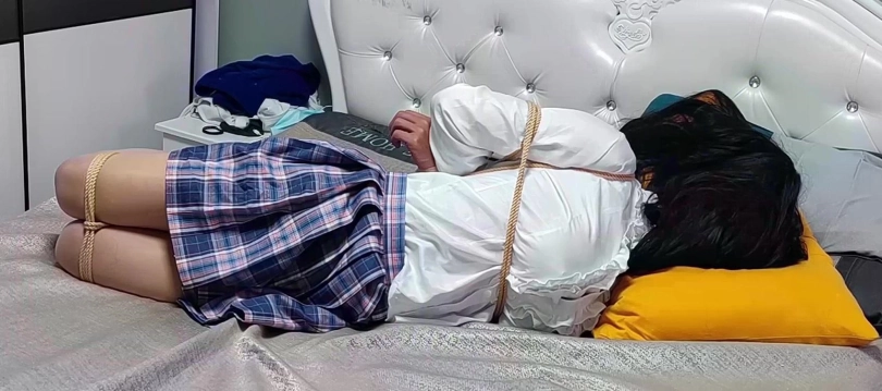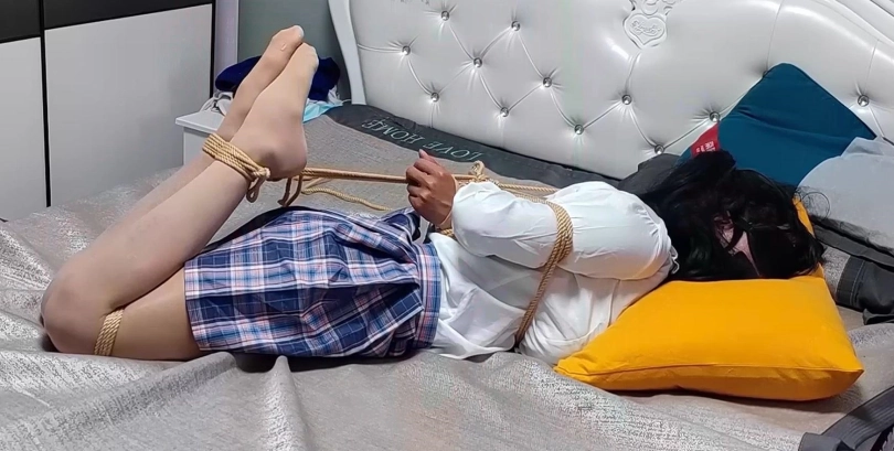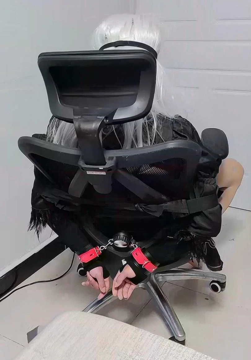 绑法 驷马;单腿吊;椅缚固定(双腿分开用收紧带固定到两侧扶手,双足绳子绑到椅子支撑柱);椅缚腿部悬吊;跪缚