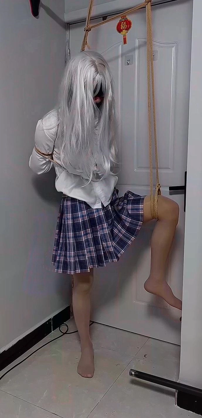 全程肉丝,衣服开头是JK;后面换成2B服装,不过假发和袜子没换成配套的,当成连衣裙吧。