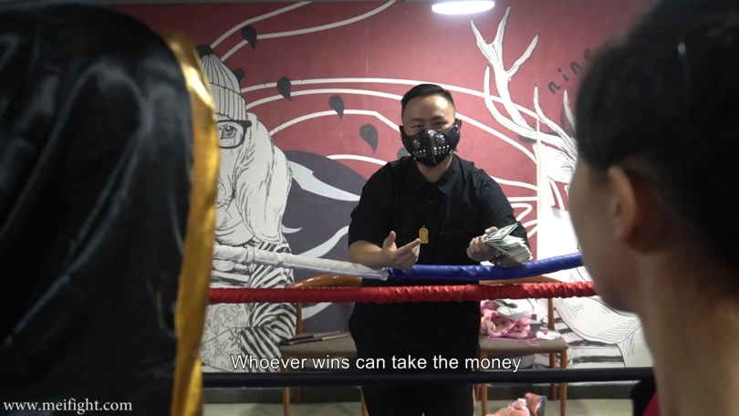 Two new boxing girls started a boxing match for the $10,000 prize. They all wore mouthguards. Their height and weight look about the same. It seems like a fair game...
