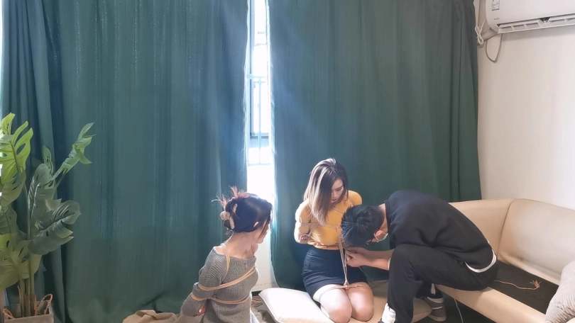 大家没想到吧,葡萄和她的表姐雪碧还能再次复出。这次是拍了一个双人的绳艺视频,第一次拍这种的,葡萄被日式驷马放置在地上,雪碧被日式跪缚吊在窗边的栏杆上,两姐妹自己找办法互相解绳子。