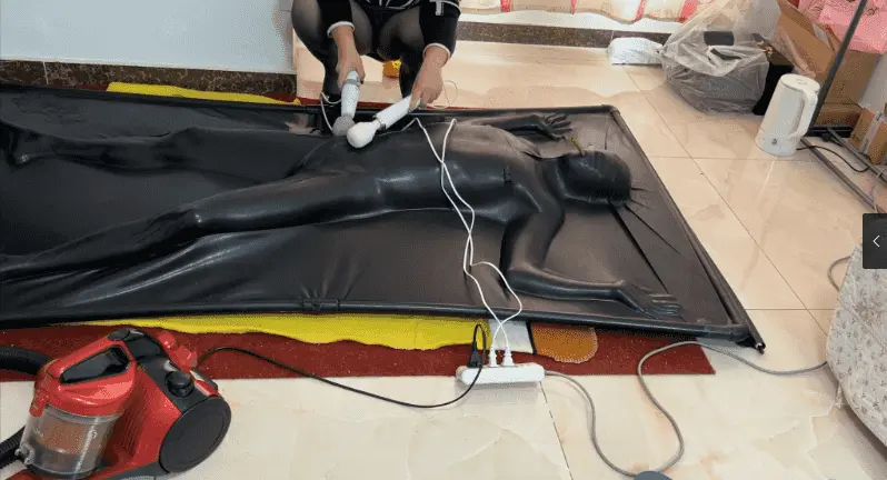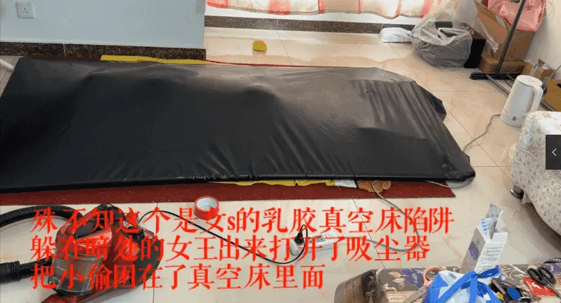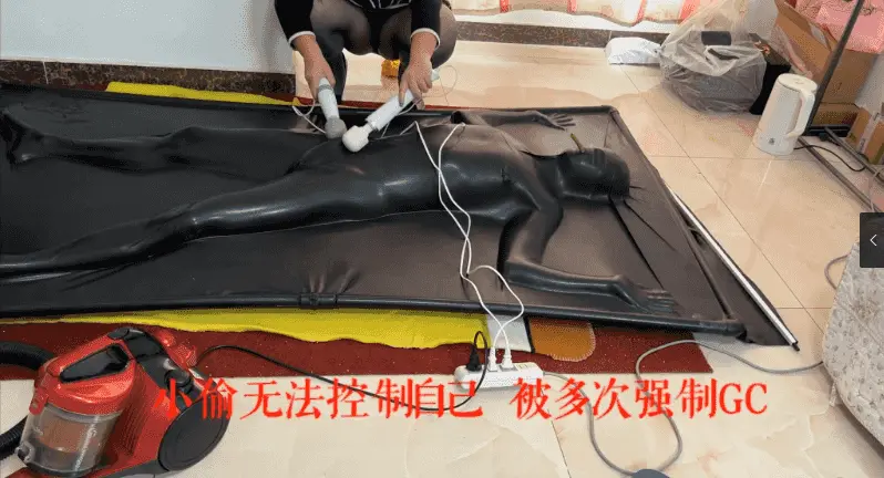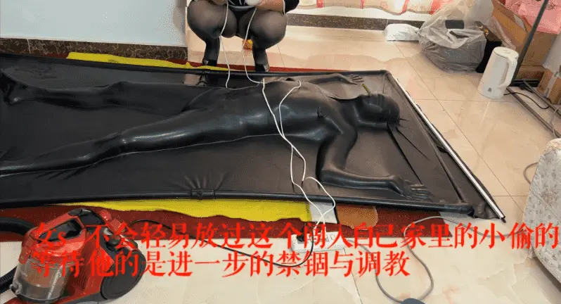钻进去后躲在暗处的女s出来打开了吸尘器抽干了乳胶真空床里的空气 小偷就被困在了里面 无法动弹 无法说话 还没有空气 很快小偷就[X_X]了过去 等待小偷的是 无尽的黑暗拘束 和电击乳T 还有无限的强制GC
