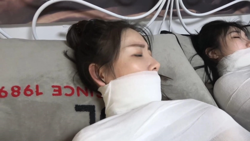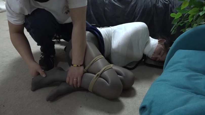 这次美女们丝袜美腿被折叠捆绑,美女们醒来蠕动挣扎,想下床但折叠的双腿没法下去,只能围着床边绕圈圈,好不容易2人想办法下了床,吃力的向大门爬行,大门钥匙就在门上,大门明显没锁,但讽刺的是2人折叠双腿正好够不到门把手,2个人只能回到客厅,发现手机,想用手机求救但又因为折叠的双腿爬不上沙发。最后2个被狱警发现,一番挠痒丝袜美脚折磨。