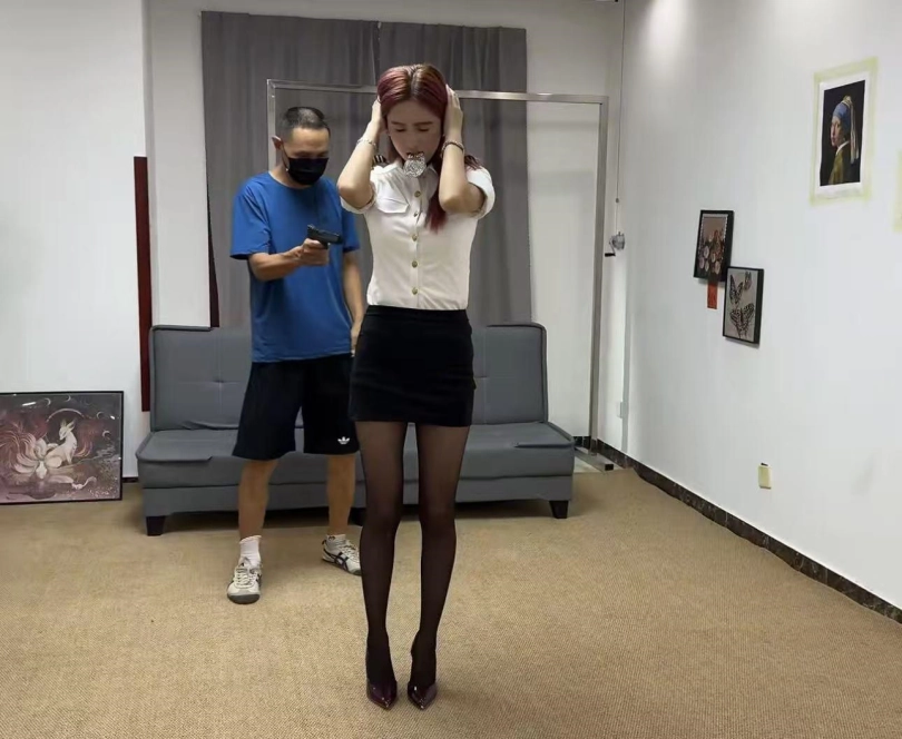 美女搜查官木子身穿ol黑高跟,去敌人家搜查时被发现,要求站立双手抱头,叼住工牌自己脱掉裙子上衣,只剩内衣丝袜,男主称将把她调教好后卖给客人 ,对美女木子进行打屁股,挠脚心,丝袜嘟嘴,五花捆绑,并腿驷马,分腿驷马,并腿抬起,青蛙趴,牵引调教。
