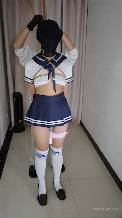 拍摄前试了下柔韧性,米粒觉得很容易逃脱,没想到我还要把她的小手用臭袜子包起来,还c入了她害怕的充气g塞,这样就根本找不着手铐小小的锁眼了,开大话筒之后彻底败北被强高。期待下回的惩罚篇吧