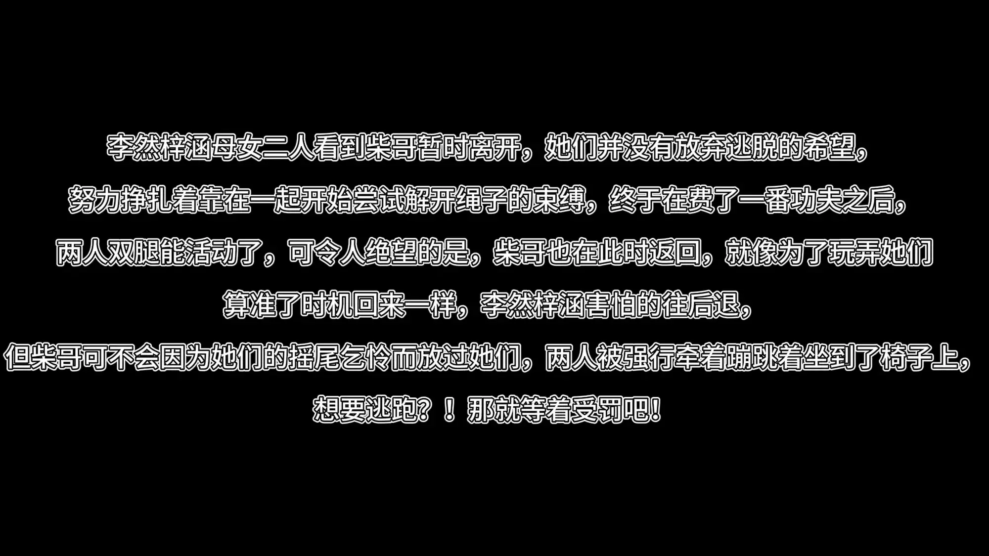 【视频时长】:00:24:07 【文件大小】:3033.84 MB 李然梓涵母女二人看到柴哥暂时离开,她们并没有放弃逃脱的希望, 努力挣扎着靠在一起开始尝试解开绳子的束缚,终于在费了一番功夫之后, 两人双腿能活动了,可令人绝望的是,柴哥也在此时返回,就像为了玩弄她们 算准了时机回来一样,李然梓涵害怕的往后退, 但柴哥可不会因为她们的摇尾乞怜而放过她们,两人被强行牵着蹦跳着坐到了椅子上, 想要逃跑?!那就等着受罚吧! 枫叶梓涵饰演女儿梓涵 特约模特李然饰演律师妈妈李然 本集李然和梓涵的互动非常棒,特别是对视镜头很有感觉!坏人玩两人的桥段也是爽感十足! 多提一嘴李然姐,真的豁得出去,把咱们当自己人,哈哈哈哈!有机会之后还会拍然姐! ![]() ![]() ![]() ![]() ![]() ![]() ![]() ![]() ![]() ![]() ![]() ![]() ![]() ![]() ![]() ![]() ![]() ![]() ![]() ![]() ![]() ![]() ![]() ![]() ![]() ![]() ![]() ![]() ![]() ![]()