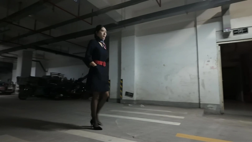 空姐十一接到电话赴约,没想到竟然是一个猥琐男,偷偷在地下车库偷窥,空姐十一穿着高跟鞋哒哒的走在空旷的地下停车场,高跟鞋声音响亮动听,没想到十一还有S潜质,皮鞭挥起来特别狠,训起话来也动听,玩起了更是花样百出,一个定拍,开发了十一的另一面