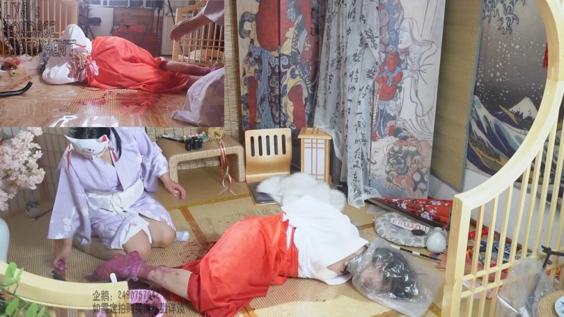 四、处刑(双视角)因为挑战失败而接受处刑,头上套袋的情况下跪在房间中,脚底贴好了弹,侍女将踩踏的混合物,巫女小姐想要躲避却无法躲开,只能挣扎着无助地呜呜叫着,最终昏迷