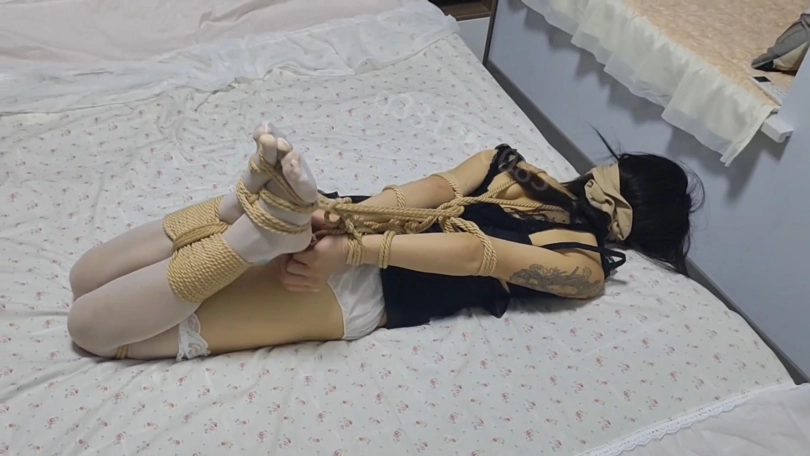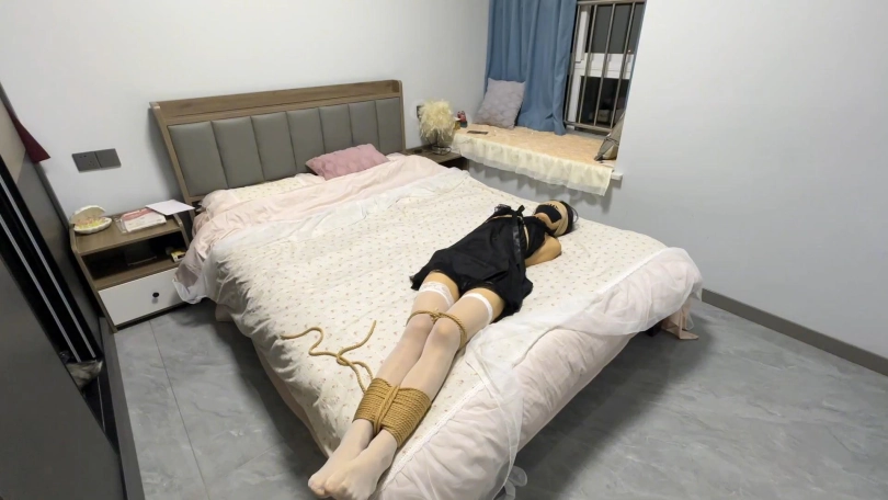 睡觉之前先让m失去三观,肉色厚丝袜蒙眼,内裤堵嘴然后再胶布封嘴,然后再带上耳机,完成一系列步骤,大叔就去客厅看电视了,剩下m一个人无助的挣扎,许久许久过后打开房门,准备开工!