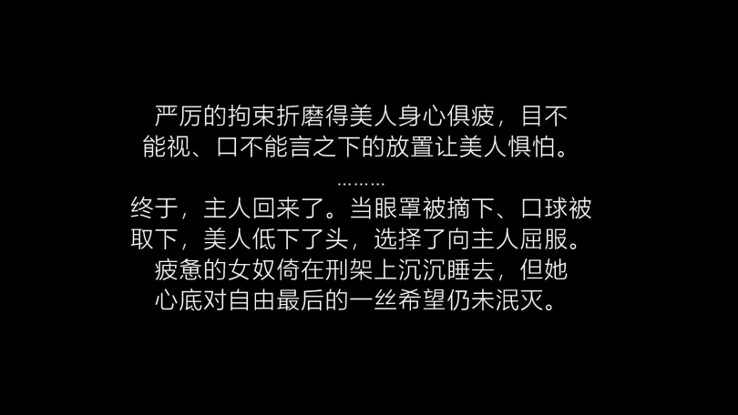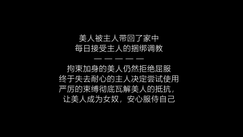 【视频时长】:00:32:34 【文件大小】:1161MB 美人(柳洋饰)被人贩组织绑架后拍卖,被新主人买下后带回家中。经过一段时间的捆绑调教后,美人仍然没有屈服。 又是一日,主人将戴着项圈的女奴牵到拘束架前,企图用严密的紧缚消磨女奴的抵抗。 女奴来到拘束台前,主人为其解下项圈;并要求女奴戴上长手套,然后驱赶着女奴坐上拘束台。女奴背靠铁柱而坐,双手被主人高高拉起到铁架后,用绳子紧紧绑在铁架上。 主人解下女奴的口球,女奴开口求饶,哀求主人能放她自由。主人训诫女奴放弃幻想,好好当女奴服侍主人,永远别想逃脱。 主人一边和女奴对话一边加固拘束,用绳子把女奴的躯干固定在铁杆上,再从后面用一字枷分腿器拴住女奴的双脚。 绑好后,女奴试图挣扎却动弹不得。主人见了开始抚摸调教女奴。女奴挣扎呻吟,主人劝其放弃挣扎,老老实实做主人的女奴,却被拒绝。 于是主人给女奴戴上眼罩和口球,并恐吓女奴,说要用最严厉的束缚和调教让她屈服,然后继续调教和抚摸。一会后,主人再次询问女奴是否屈服,女奴仍然摇头拒绝。终于失去耐心主人非常生气,扬言要将女奴一直这样绑着,绑到她屈服为止。 主人离开了,被紧缚放置的女奴挣扎着,呻吟着…… 主人终于回来了,被紧缚折磨的身心俱疲的女奴选择了屈服。主人解下女奴的口球,女奴开口向主人求饶,保证安心服侍主人,不再想着逃跑。 主人终于满意了,遂将女奴从拘束台上解开。疲惫不堪的女奴倚在架子上昏睡过去…… 柳洋小姐姐这次的装扮是性感白色侧开旗袍,搭配上白色油亮吊带袜、银色扣带高跟鞋和白色缎面长手套,就是一个美。 这次精心准备了详细的剧本,小姐姐的表演也是非常棒,表情和仪态都比较到位,非常诱惑。 ![]() ![]() ![]() ![]() ![]() ![]() ![]() ![]() ![]() ![]() ![]()