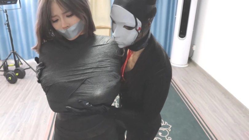 蒙面女人将女主囚禁在家中的衣柜里,外出归来后准备短暂释放她,没想到女主准备趁机唤醒siri求救,结果被抓了个正着,于是蒙面女人为了防止她再逃跑并惩罚她用上了木乃伊全包,玩到最后发现女主没了动静,以为出事了就解开了她身上的束缚,结果女主趁机捂晕反杀蒙面女并捆绑