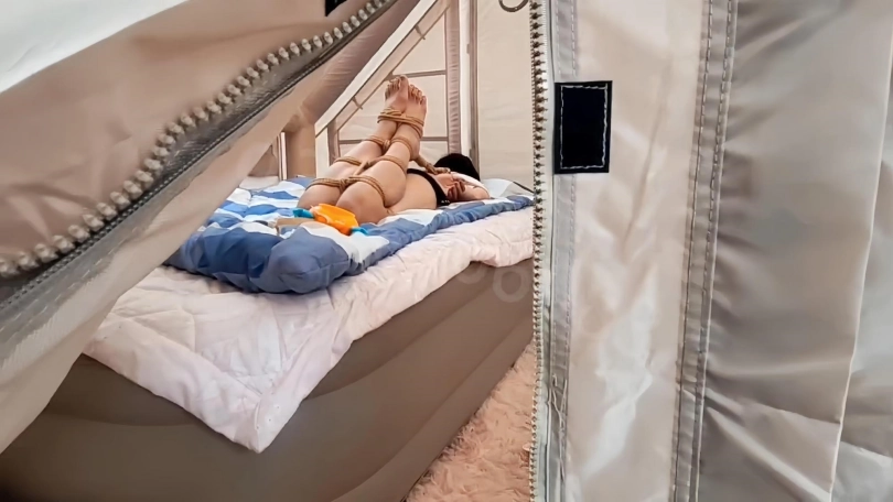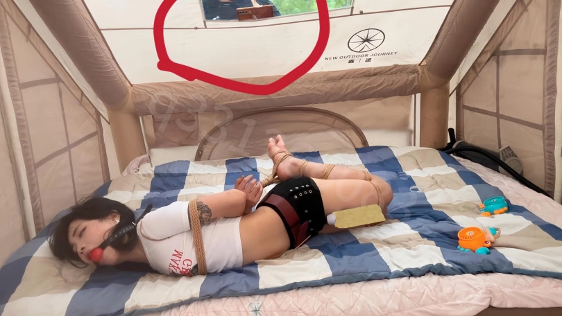 周围全是人的露营基地里面,有一个帐篷里面藏着一个不为人知的秘密,过上过下的人肯定想不到里面捆绑着一只被驷马固定了玩具伴随着挣扎的尤物。过了好久一位大叔走到了帐篷边缘四处往里面打探,鬼鬼祟祟的穿了进去,开始一系列的调教,一直到晚上。