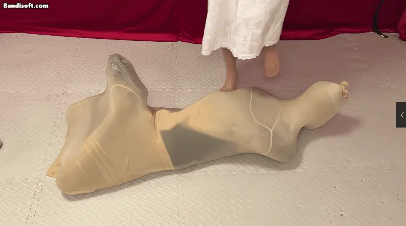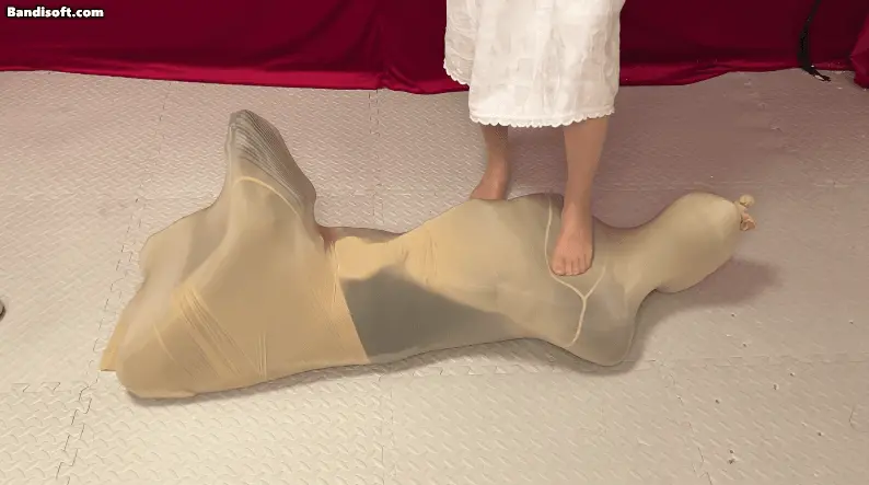 颜老师看着弟弟在地上的丝袜茧里面挣扎,又拿来了一双白色丝袜,将原本就紧绷的丝袜茧再裹上一层,这样弟弟就根本无法从丝袜茧里面挣脱出来了,光滑的丝袜摩擦弟弟的身体,反抗都是徒劳无用的。全身上下都被丝袜紧紧包裹,弟弟不断尝试挣扎,但是这样也只是不停消耗自己的剩余体力,一边的姐姐颜老师在思考接下来要怎么继续调教这个偷窃自己丝袜的弟弟。