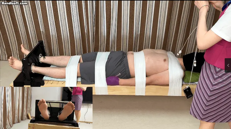 空姐颜老师下班回家发现有个男人一直跟踪自己,藏在角落里将男子击晕,并且带回了家里,放在了刑凳上,将男子双脚用脚枷固定,屁股给他塞上充气[X_X],用胶带把他死死的捆在了刑凳上,刚刚捆好男子就迷迷糊糊醒来等待他的是,疯狂的TK挠痒调教与丝责强制取J,男子将会被颜老师活活玩死。