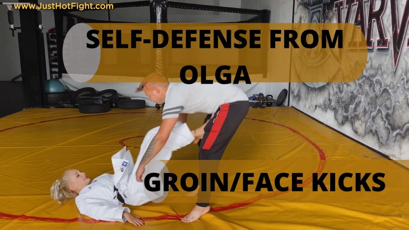 Olga shows self-defense techniques with blows to the groin and face.