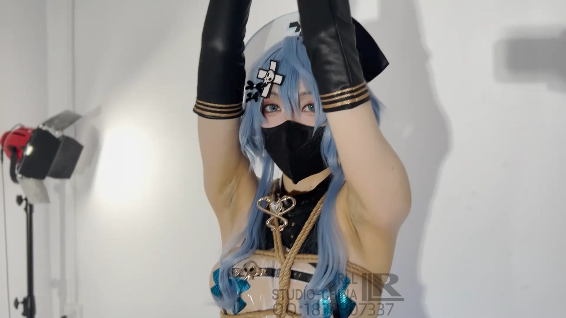 先把手吊起来站立开腿拘束,再放到椅子上强制M腿振动放置~喜欢皮袜和乳贴的老板不要错过哦~