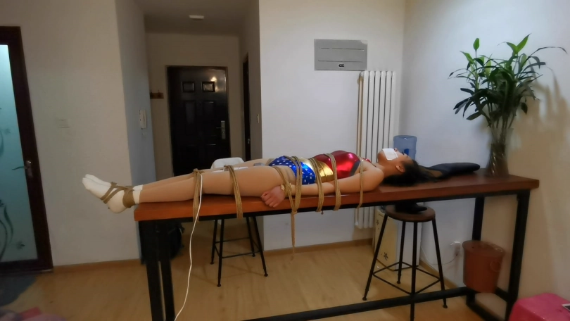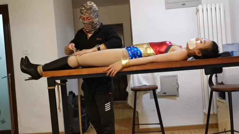 被迷晕后放到长桌上固定捆绑,脱靴,强制闻原味白棉袜,TK刺激呻吟。。。