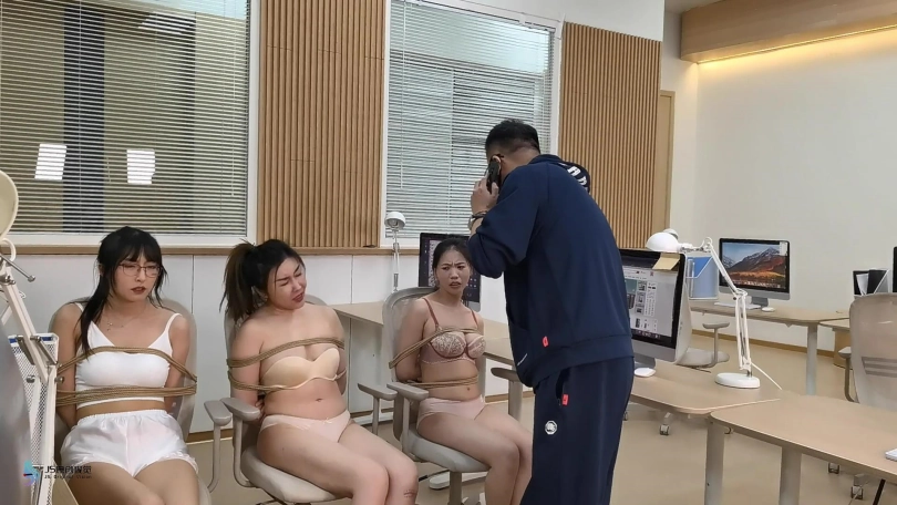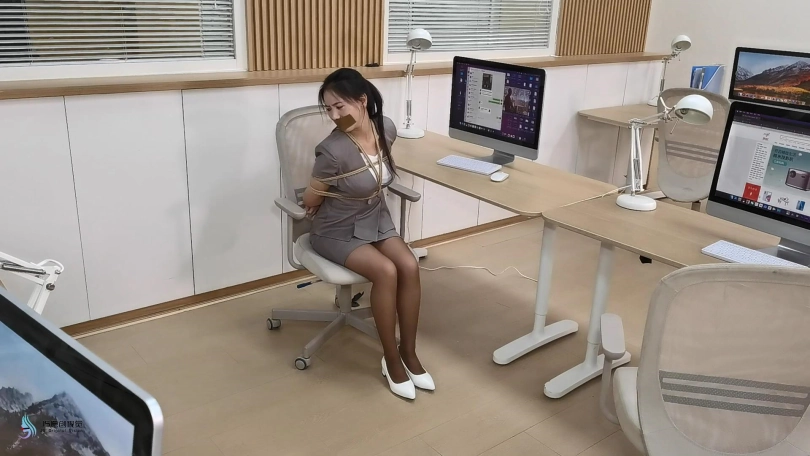 【视频时长】:00:52:18 【文件大小】:1509MB 1)在一个星期六的下午,一个女强盗打扮成快递员并按响办公室的铃。女接待员打开电梯大厅之间的门让她进来。强盗进了屋还用枪威胁接待员保持沉默。她然后让前台用棕色胶带粘住她的嘴证实她不能尖叫。 2)在下一个场景中,接待员穿着棕色制服连裤袜和白色高跟鞋被捆绑在椅子上。她正在努力的发出“嗯”的声音。 3) 在搜查了办公室之无果后,强盗取下了前台嘴上的胶带问她老板的房间保险箱的密码。接待员说只有经理知道密码,一会有位面试者,她正在回来的路上,叫强盗不要伤害她。强盗让接待员脱下她的制服和连裤袜。 4) 然后劫匪用拉链绑住了她的手腕和脚踝,把刚刚脱下的连裤袜塞到她的嘴里然后用棕色的胶带再次封住,以确保她不会尖叫。 5)在接下来的场景中,抢劫犯穿着接待员的制服配上她自己的黑色高跟鞋,她已经放好了在老板室的桌子下面的接待员。 6)下一个场景中,面试者来到公司,强盗假装她是经理,带她进了老板室为面试。在劫匪和面试者坐下之后。桌下的接待员在挣扎、吵闹;强盗试图踢她阻止她,并告诉面试者这声音是从附近正在装修的房屋。面试者感觉不太对劲试着离开,但是劫匪拿出枪来威胁她停下来,让她脱掉衣服。面试者别无选择,只能照做。然后抢劫犯要求她把手放在她背后用拉链绑住她的手腕和脚踝,然后胶带封住她的嘴巴;面试者尖叫着发出“嗯嗯”的声音。 7)在接下来的场景中,经理(到达办公室后,强盗穿好了衣服接待员制服说她是新入职的,和面试者已经到了,坐在里面;而另一个接待员在厕所。经理来到办公区,看到的情况感到惊讶,两个穿着内衣的女孩被绑起来,塞住嘴,坐在办公椅并排尖叫。然后抢劫犯用枪威胁经理并要求她脱掉衣服。只剩下胸罩,内裤和高跟鞋了,她让经理把连裤袜塞到她嘴里,然后给了她一块用棕色胶带粘住她的嘴。 8) 在接下来的场景中,所有的女孩都被绑在办公椅上。然后劫匪打开了保险箱得到珠宝,并使用手机录下她们的现状,3名被绑女子向着镜头痛苦地呻吟着,不停扭动身体,挣扎,嘴里被胶带封着并发出「救命啊,不要再拍」。劫匪并告诉女孩们,除非她她安全的离开,不许她们报警,否则这些视频将被发布在互联网上。女孩们哭了试着用她塞住的嘴说“不”。 9) 那些女孩一直在挣扎。与此同时,一名男性访客从电梯里出来,听到办公室里的声音不正常,进来发现了被捆绑着的女孩们。帮她们撕下嘴上的胶带。并报了警。警方在女孩的描述下,很快将劫匪缉拿归案。 10) 经理在劫案后需接受心理辅导,因晚上经常梦见于办公室被捆绑一幕,心理辅导师正带领她回想被缚情景,希望她能勇 敢面对过去,走出阴影。 a) 一开始就是辅导师望着艾菲的主观镜头。 艾菲坐在经理室的沙发上向着镜头,旁边有一把女性声音是辅导师的,她说:“我只道妳晚上经常梦见于办公室被捆绑 一幕,我想妳现在回想被缚情景,并细致地告诉我,从而能勇敢面对”。跟着,艾菲便说:「我梦到自己只穿着肤色内衣白色高跟鞋被棕色胶带封着嘴巴,手脚被棕色胶带绑着。」 b)跟着镜头便摄录着艾菲被捆绑的情况,而当中姿势转变了 3 次。一开始是坐在经理室沙发上,跟着是膝跪在地上,臀 部向外,胸部伏在沙发上。最后的姿势是站了起来。跟着,艾菲望着鏡頭「嗚嗚」地呼叫着,接下來有一雙手替艾菲撕下封嘴的膠帶,艾菲便把口內白色 絲質的內褲吐出。艾菲隨即便展露出感恩及得到救贖的表情。 c)镜头跟着又回到艾菲坐在沙发上。镜头外辅导师的声音便向她说:「那很好啊,最后被 移除堵嘴物,证明你已走出阴霾了」。 ![]() ![]() ![]() ![]() ![]() ![]() ![]() ![]() ![]() ![]() ![]() ![]() ![]() ![]() ![]() ![]() ![]() ![]() ![]() ![]() ![]() ![]() ![]() ![]() ![]() ![]() ![]() ![]() ![]() ![]()