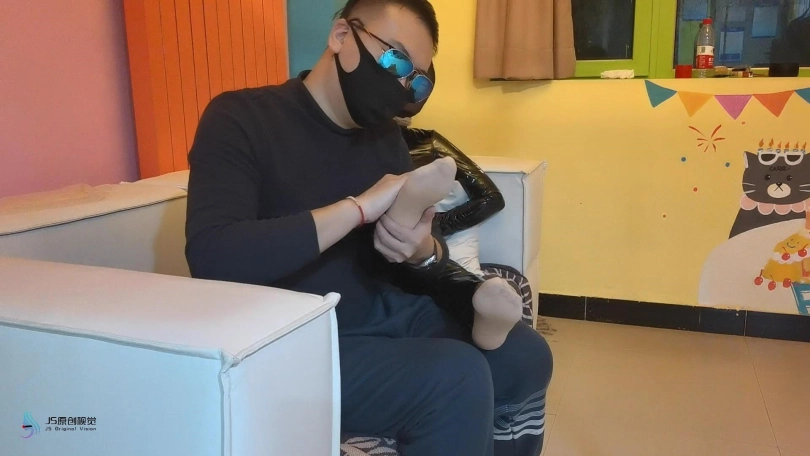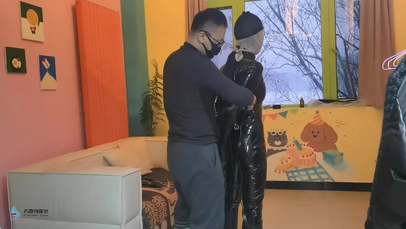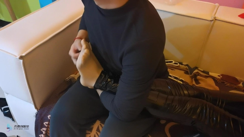 老狼将梦琪从椅子上解开。将她的双手用单手套拘束着,脖子处考上铁链,这样一直让她站着。过了一段时间,老狼将她放在沙发上,解开脚铐,并脱掉她的靴子,不断的玩弄着,挠她的脚底。受不了的梦琪说出了全部底细。最终失去利用价值的她被老狼干掉。。。