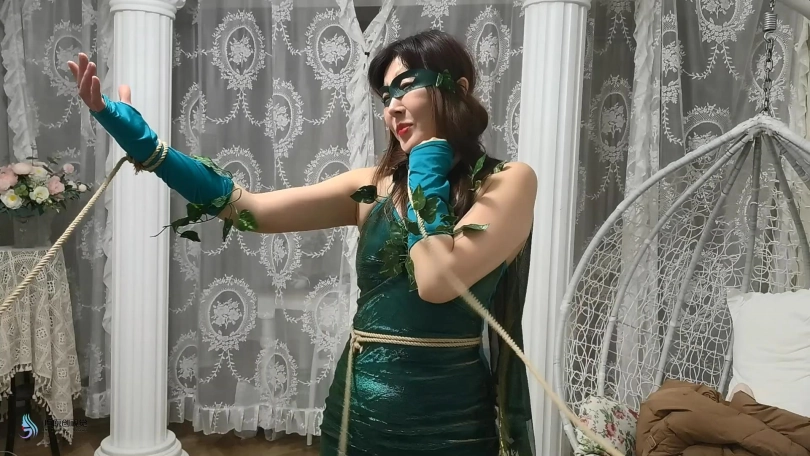 毒腾女潜入了房子,在屋里发现大量的绳子和女人的衣物。“看来这就是案发现场”毒腾女拿起绳子说着。就在这时,一条绳子突然从后面缠绕住她的脖子,并将她向后拉去。毒腾女正在惊讶这是怎么回事时,又有多条绳子串了出来,将她的身体,手脚牢牢的绑在两边的柱子上。