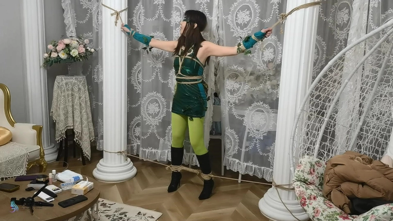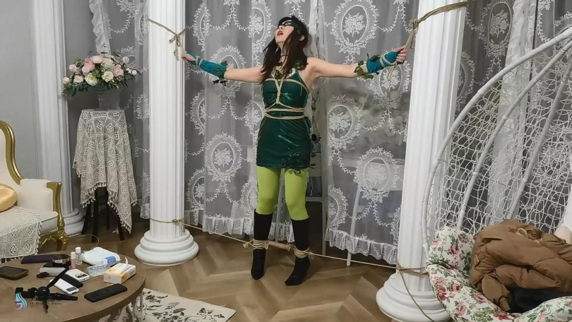 毒腾女用力的挣扎着,尖叫着,但很快她的嘴里就被塞进口球,绳子缠绕着一根电动棒子向她移动着,并固定在她的裆部。强大的震动感觉刺激着毒腾女,她无力的发出“呜呜”声。她祈祷着女侠过来拯救她。。。
