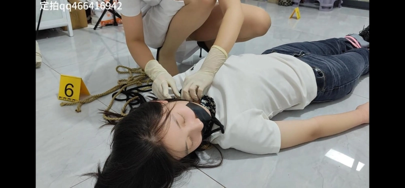 漂亮妹子被歹徒捆绑凌辱倒下,被发现后摆弄身体,脱鞋检查,涉及元素有恋足、摆弄、翻眼皮等。