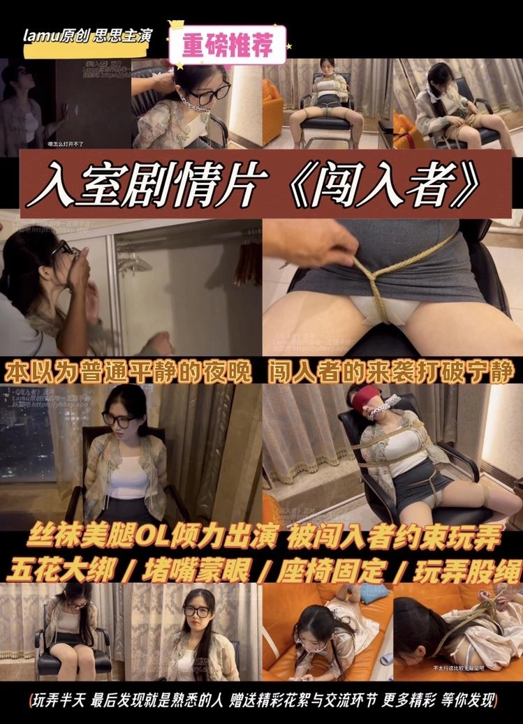 晚上下班后的ol被人入室捆绑,不断玩耍,堵嘴蒙眼肯定不能少,座椅固定捆绑,闯入者还不时拉她的股绳,折腾半天后,女主居然能借助剪刀逃脱,最后想报复居然发现入室者就是熟悉的小伙伴,必须对小伙伴生气一番,然后经过小伙伴不断安慰,最后还是愿意换一套新衣服和小伙伴继续玩,思思的表现力一如既往的好,当然最后也有花絮和聊天环节,大家一直好奇小伙伴和思思的关系这次也在聊天中得到了答案。
