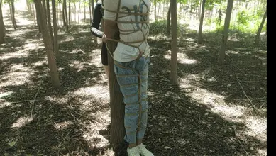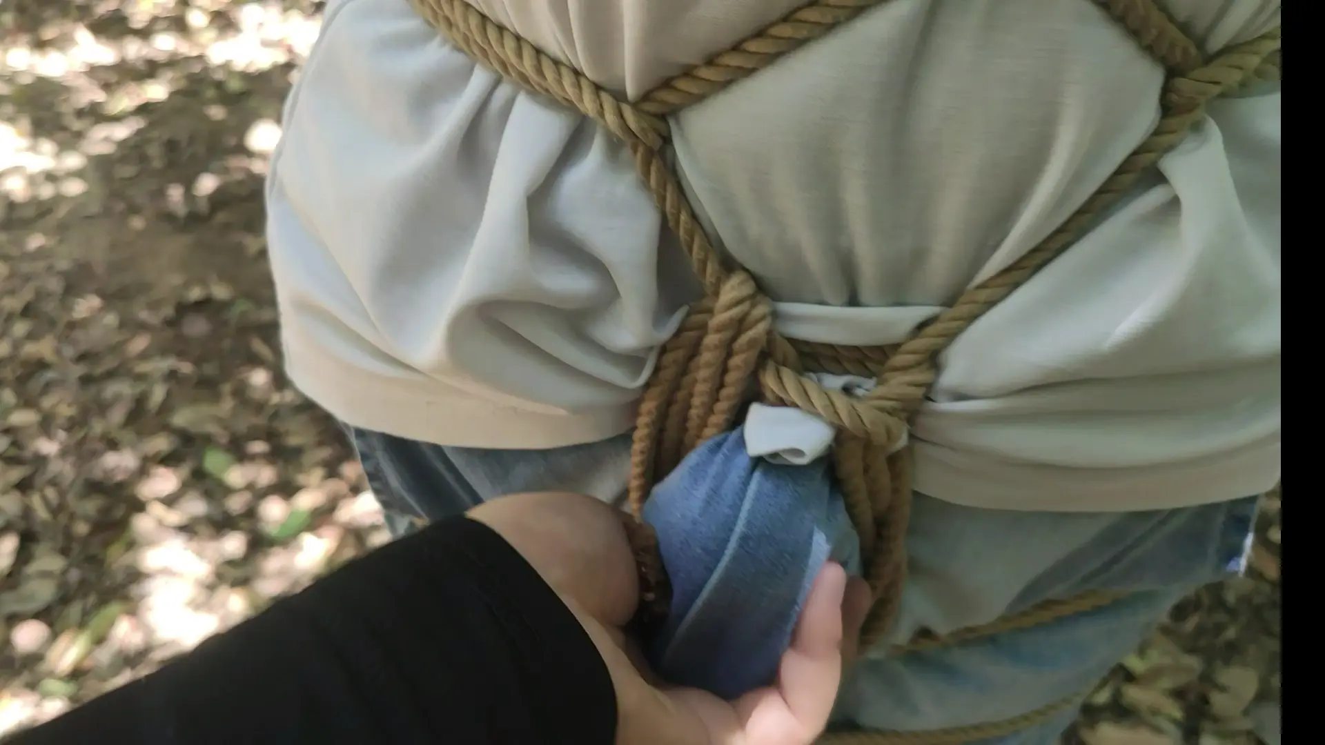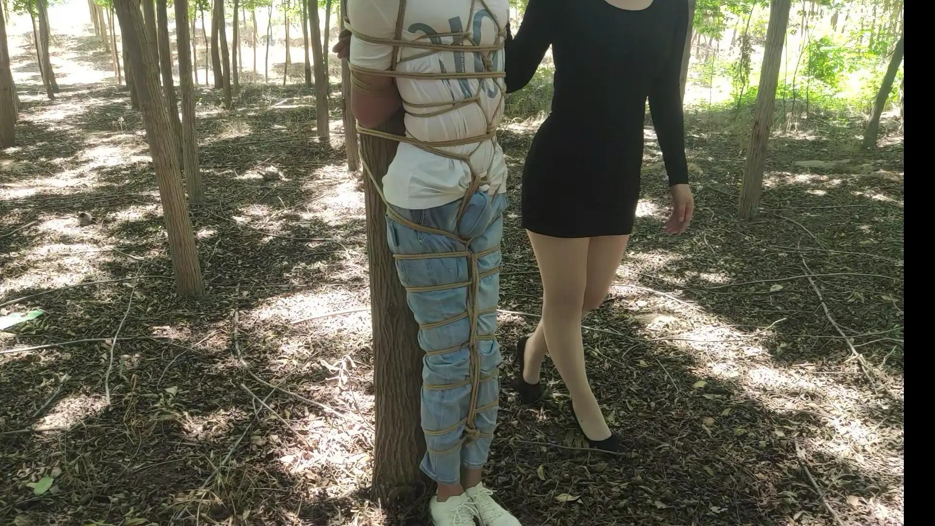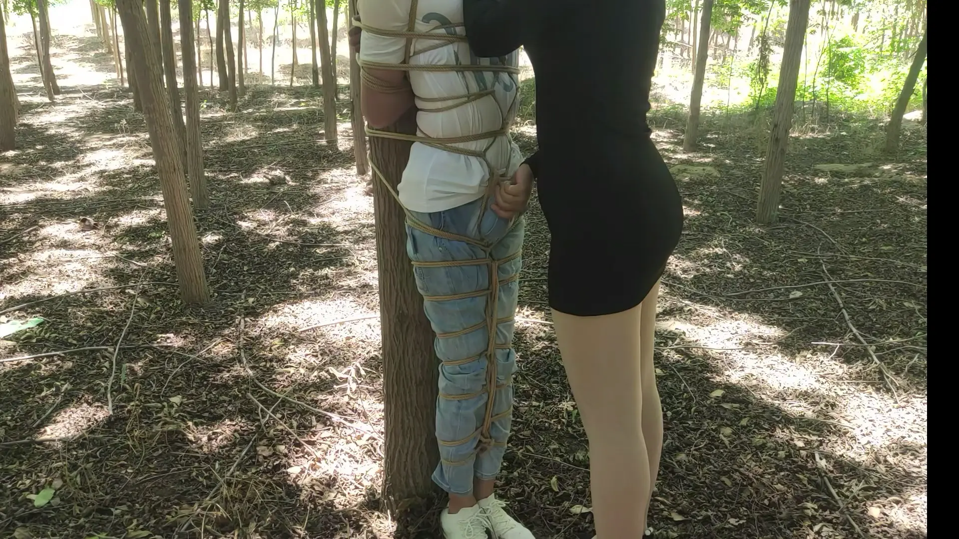 开车出去玩遇到一个不错的小树林,靠近高速口没人,被女同伴绑起来玩坦克。
