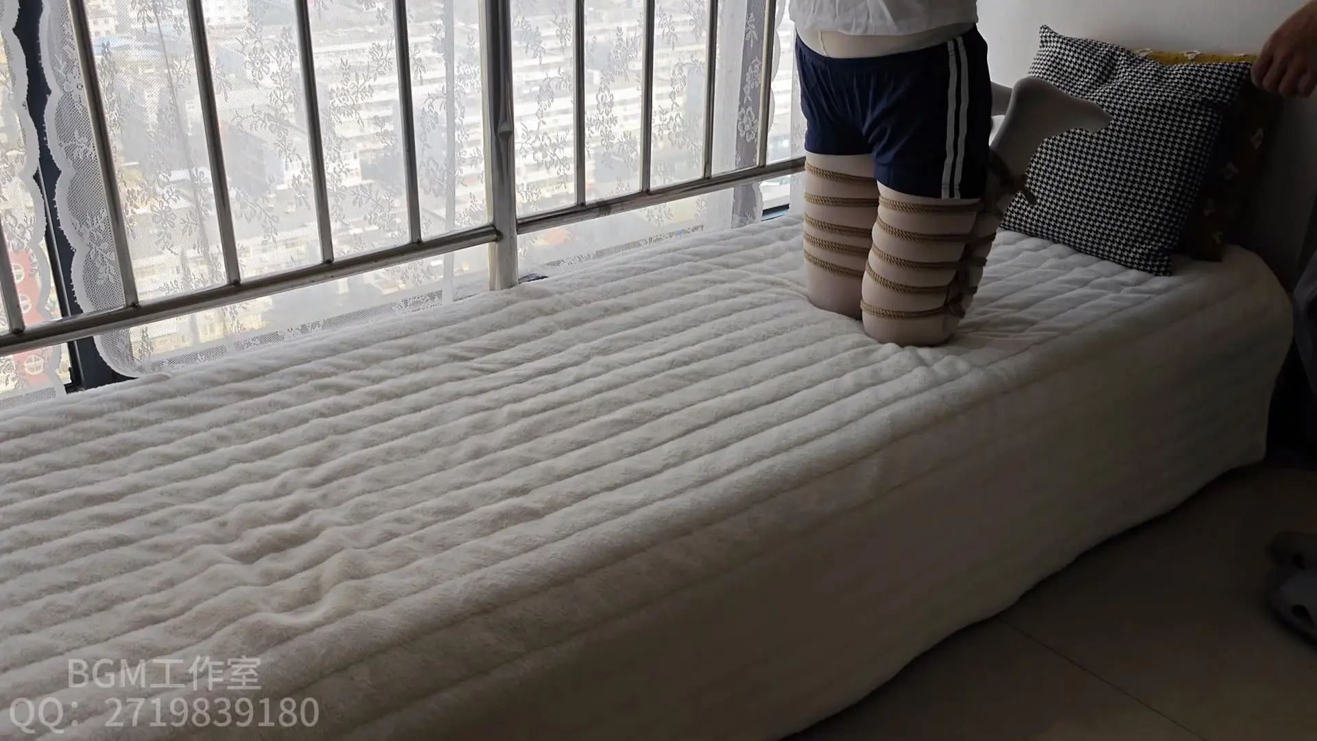 将梦梦折腿绑好,让她用膝盖走路,看到白丝小脚忍不住就想挠她脚心,真可爱!然后折腿直立绑到飘窗的栏杆上,小脚在不停的抖动,像个快乐的小鸟一样,可以看动图,中间还有好多类似的动作。