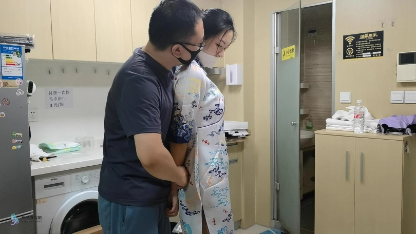下一个镜头,这时的空姐已被绳子紧紧绑起胸部手腕及足踝亦被绳子绑着。贼人捆绑空姐后,便叫她跳到睡房内,并安排她坐在床上跟着便再对空姐说「我现在在你的房子里搜索贵重物品,你最好乖乖配合」空姐惊慌地望着贼人,从嘴里发出呜呜声并点头示意会配合。空姐在贼人离开睡房后,便尝试挣扎,不停扭动身躯,并不停发出呜呜声,希望外边房子的其他人能听到自己的声音。空姐一开始是坐在床上挣扎,过了一会后,便开始觉得乏力疲倦,她的脸上也充满了汗珠。空姐跟着便侧卧在床上。继续扭动着身躯。由于扭动身躯的关系,她身上的旗袍也被牵高,露出丝袜及内裤(这里可拍摄一下臀部特写)。空姐在挣扎了一会后,好不容易才把口上盖着的布条移除并吐出嘴里的丝袜。那只被吐出的丝袜,充满了空姐的唾液。空姐在吐出丝袜后,由于听不见外面有任何声音,一心以为贼人已离开,于是便疯狂地叫喊着,但这时贼人突然冲入睡房,空姐惊慌地望着贼人并说「大哥,我不敢了,我不敢了,请你不要伤害我」贼人跟着说「不对你作出点惩诫,你是不会害怕的」。