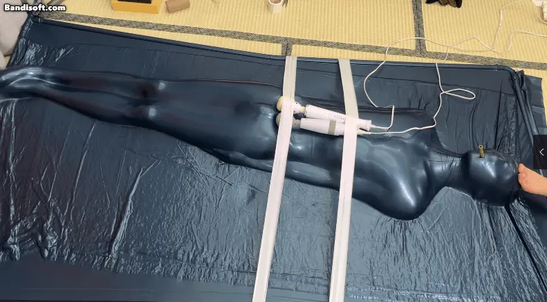 身上被丝袜紧紧包裹了三层,然后又被送进了真空床里,如果能在20分钟逃脱将会得到奖励,反之就只能在床里活活的被榨干而亡