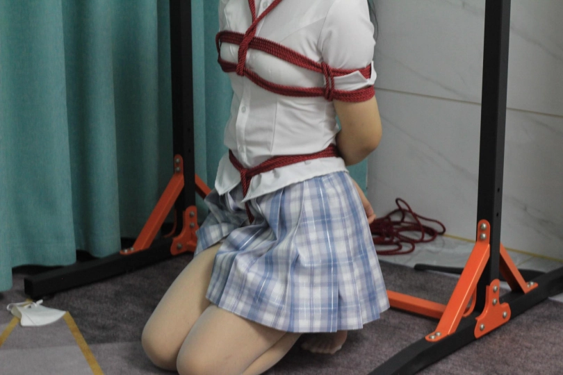 18岁新模特第二次拍摄,清纯可爱,剧情是被单腿吊起来,被tk+塞td,妹子躲闪无用,被无限折磨至哭