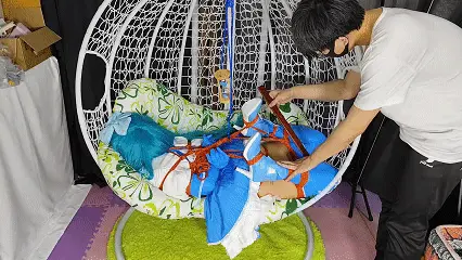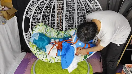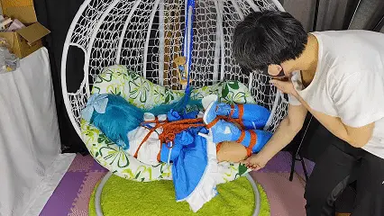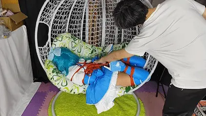 最后的话,试试最新研究的玩法吧,全身上下只有脚尖和私密部位受力,绳子已经狠狠的陷入进去了,大腿都完全绷直了,就这样仅仅20分钟就已经累的满头大汗了,解下来的一刻双腿都在抽搐!