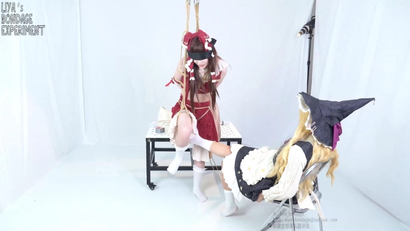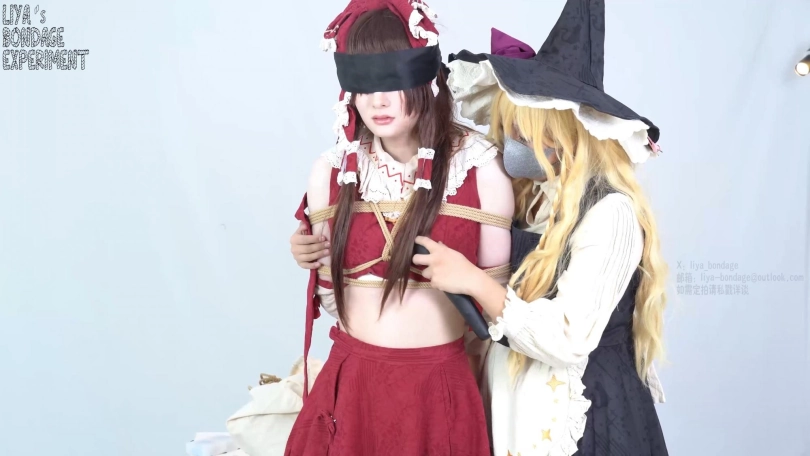 魔理沙看着好有灵梦实在没有钱,决定赞助她一些,又怕她愧疚,所以名义上用这些钱买下了灵梦的一段时间,可以任由她为所欲为,魔理沙蒙住了灵梦的眼睛,然后很熟练的用绳子将她绑了起来,开始在她的几个敏感部位用手慢慢的带她进入状态,见时机成熟,也拿出了人类的一些玩具,让灵梦娇喘连连