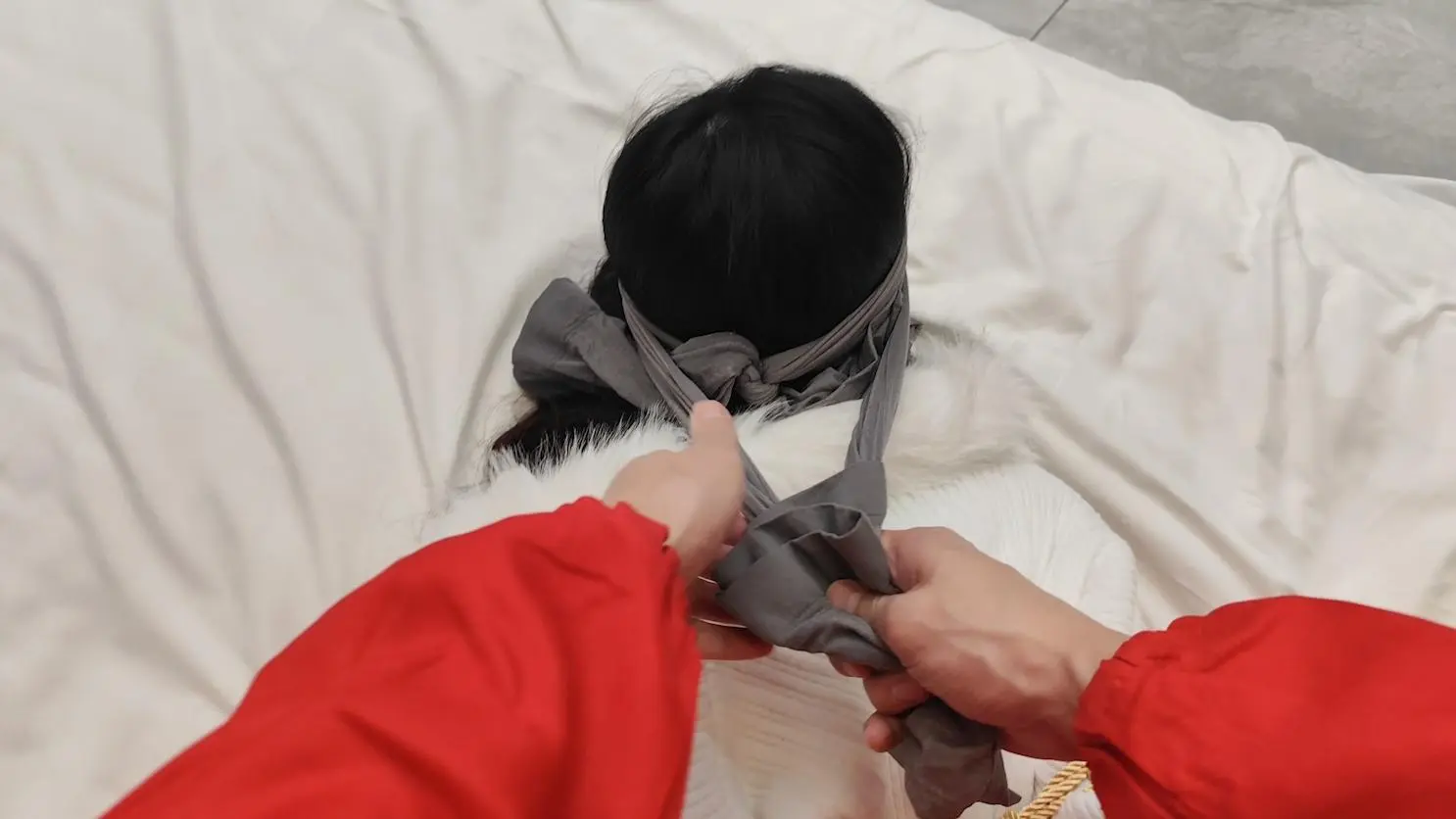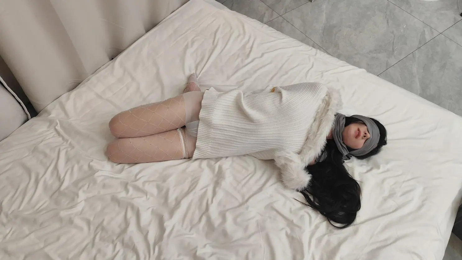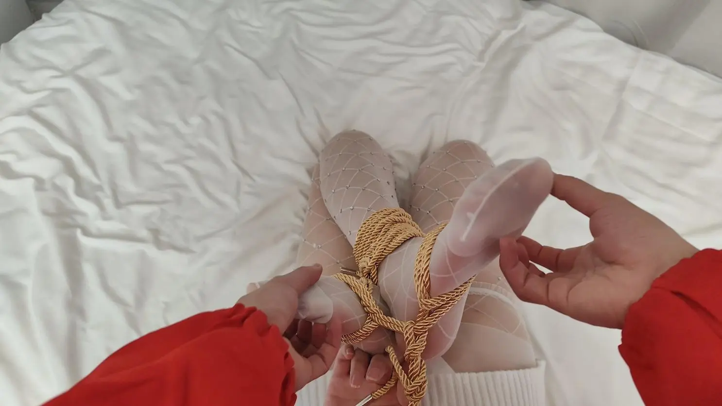 白衣白袜的小姐姐看起来是那么的恬静美好,楚楚动人,都不舍得绑了