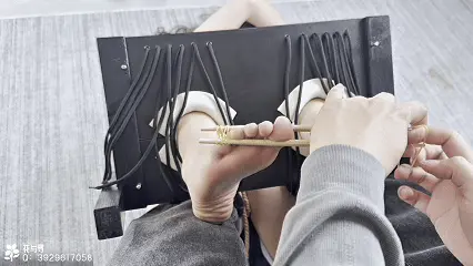双脚踩在小鱼的大腿上,将小鱼的脚放在自己双腿上,一边摸着脚一边享受,掰开脚指头