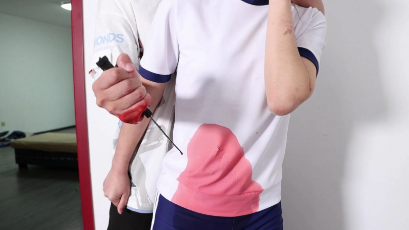 【视频时长】:00:10:00 【文件大小】:740MB 歹徒冒充修理工进入女主家。进门后女主将歹徒带到需要修理的地方后就回卧室中了。之后歹徒先假装修理水管接着从工具包里拿出刀悄悄走向在卧室中的女主趁女主不备上前从背后控制捂住女主的嘴,并用匕首劫持女主。 歹徒松开捂嘴的手,问钱在哪。刚松手,女主就大喊救命。 歹徒立即从背后紧紧捂住她的嘴并用匕首朝腹部疯狂地捅了七八刀,女主腹部出血。 捅完后,歹徒松开捂嘴的手,歹徒将女主【已死亡】慢慢放在地上。过了一会儿歹徒处理女主的尸体将尸体拖进浴室。(拖行过程中鞋脱落) 女主蜷缩躺在浴室里,腹部和周围地板上流了许多血。 ![]() ![]() ![]() ![]() ![]() ![]() ![]() ![]() ![]() ![]() ![]() ![]() ![]() ![]() ![]() ![]() ![]() ![]()