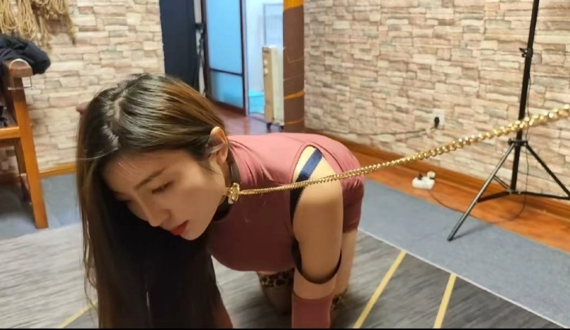 佳佳第一次尝试笼子关押,佳佳带上项圈,被牵着爬进房间,关进笼子半小时,最后牵出来谈感受,觉得很不错,很愿意被关笼子。