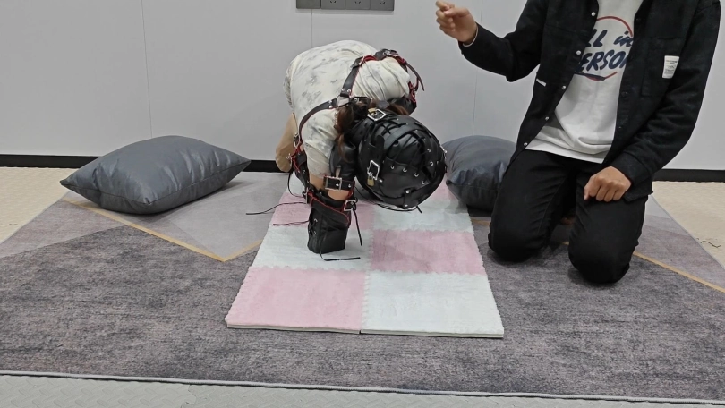 新模特温婉首次定拍头套来了,身穿白色旗袍,梨形身材,温婉首次体验k9套装,戴上头套,绑上股绳,戴上项圈牵着走,tk,妹子比较怕痒,一挠就会乱动,后面在头套上贴上胶带,直接zx个几分钟,那天也很热,也很耐绑,下次准备试试放置捆绑,最后还有快递小哥打电话骚扰,差点给温婉妹子吓坏了哈哈哈。
