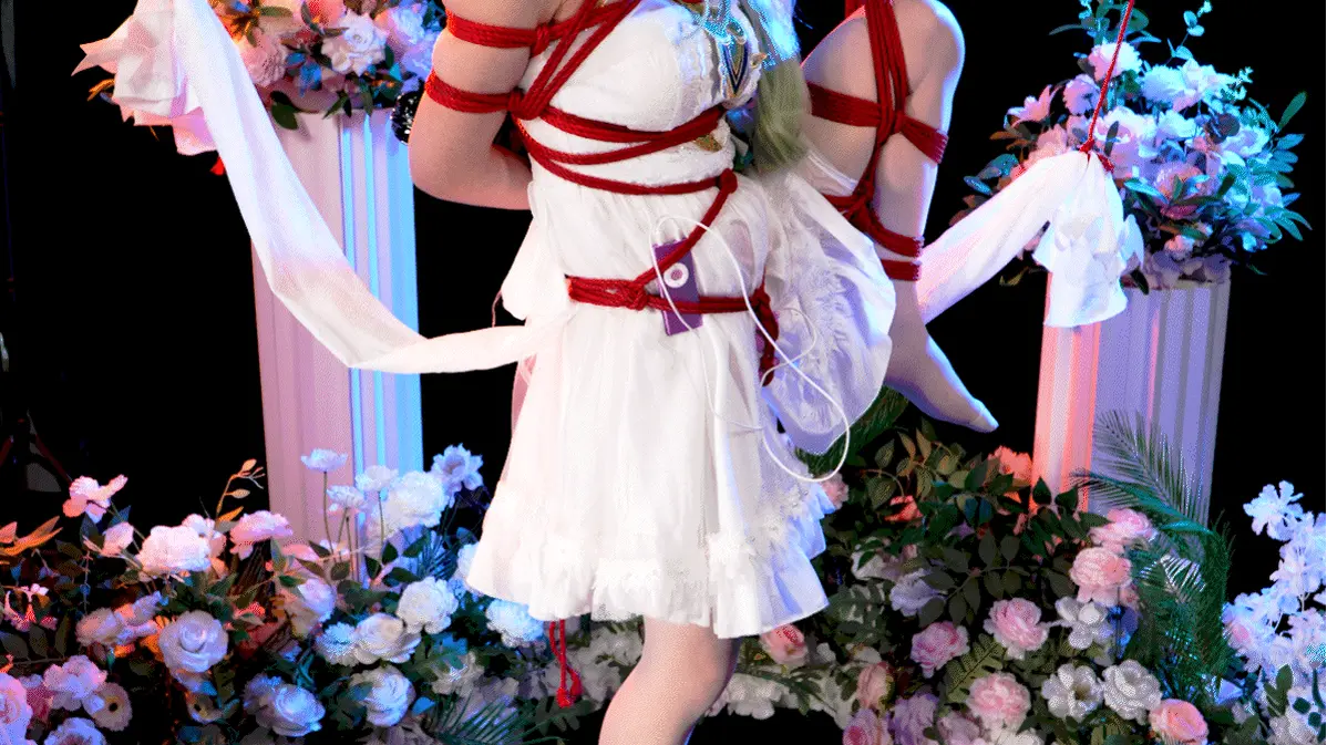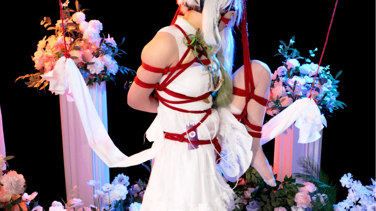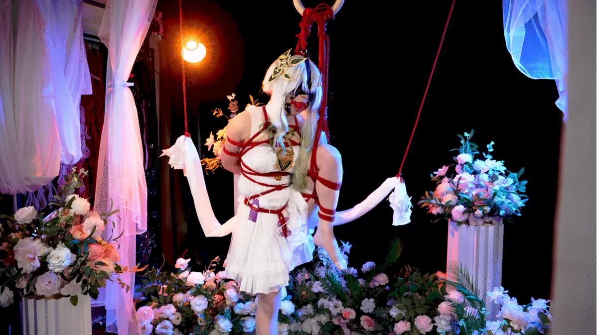 蒙眼、封耳、堵嘴,纳西妲花嫁的捆绑放置挣扎。