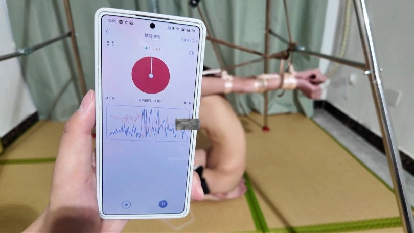 马具口球加上极限直臂反吊,上半身死死限制到只能活动手指,连脖子都动不了,大腿佩戴了役次元电击器开启禁锢限位模式微微的挣扎都会触发电击 ,只能强制跪着保持及其难受的姿势