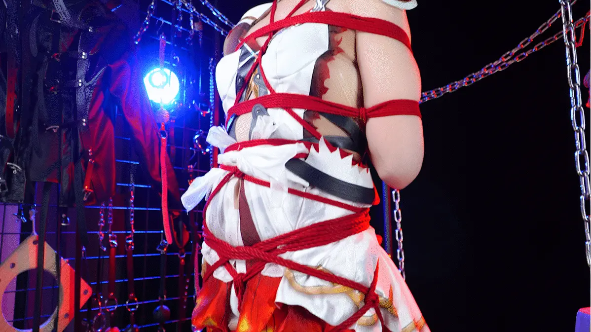 蒙眼、封耳、堵嘴,椿的捆绑放置挣扎。
