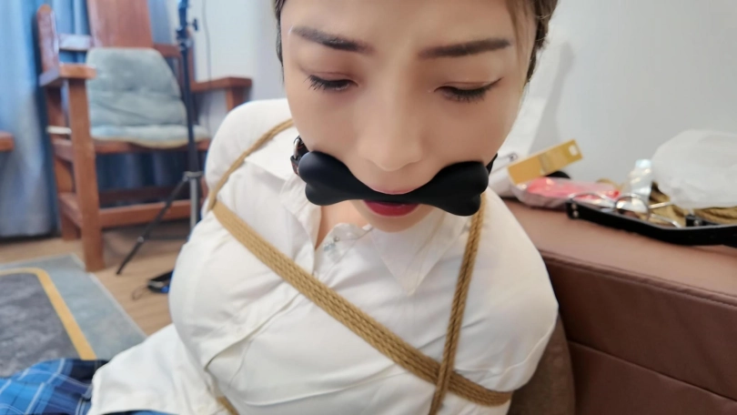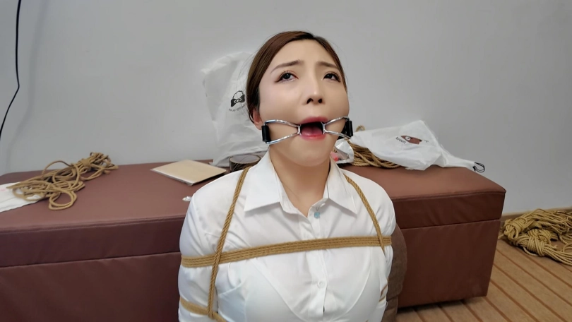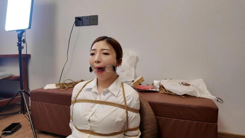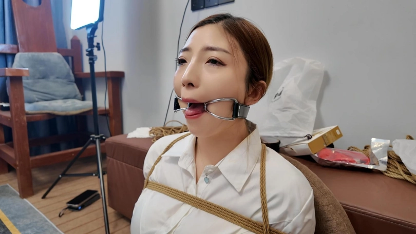 佳佳后手观音口塞训练第一期,一个后手观音捆了半个多小时,这次试用了两种口塞,分别是狗骨头口塞和不锈钢口环,还是口水直流啊,工作室一共准备了十几种口塞,一样一样的都要给她慢慢尝试训练